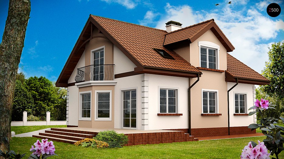Z28 Projekt hiše z izrabljeno -bivalno mansardo, frčado, erkerjem in stransko teraso