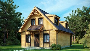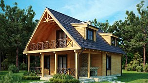 Hiša iz lesa, mogoča tudi zidana verzija, s pokrito teraso in balkonom, idealna kot vikendica.