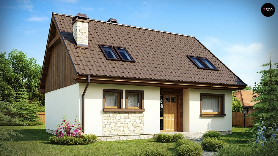 Z40 Projekt hiše z dvokapno streho, enostavne in ekonomične za gradnjo, z lepo teraso