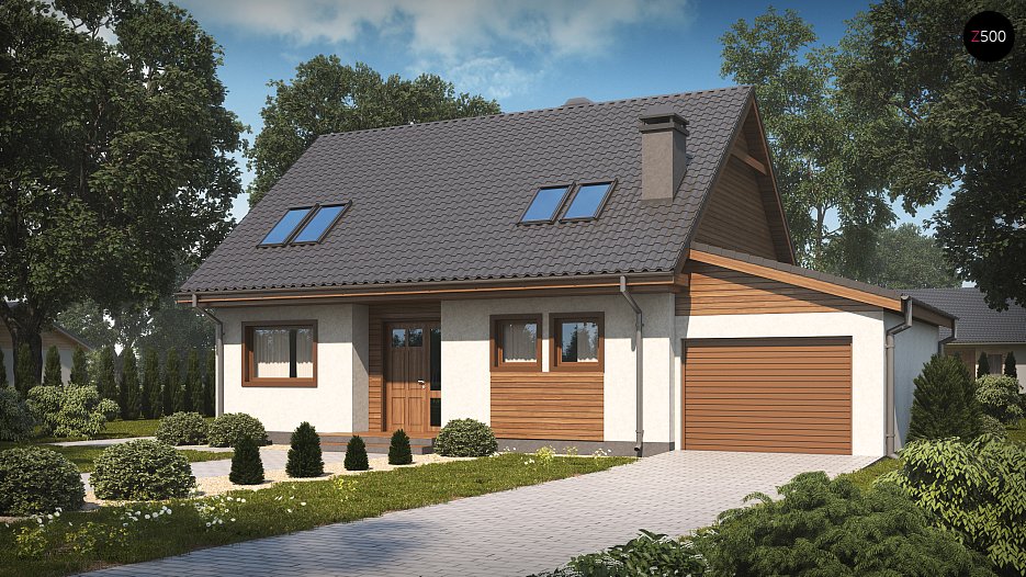 Z40 GPp z garažo z desne strani in enokapno streho nad njo