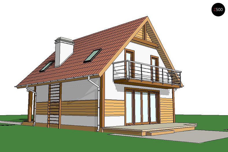 Zasnova hiše Z45 v različici, ki je povečana za 90 cm - dnevna soba in spalnice na podstrešju sta bili povečani.