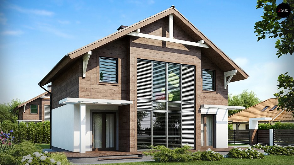 Lepa nadstropna hiša s prostorno razporeditvijo in velikimi steklenimi površinami