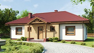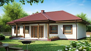 Tipski načrt simetrične, udobne in funkcionalne pritlične hiše s štirikapno streho.