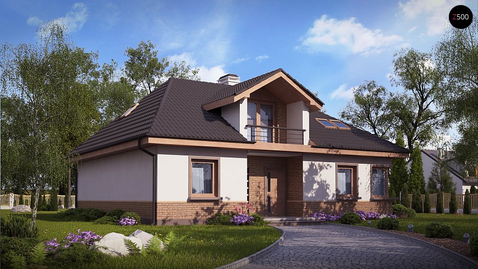 Projekt Z84 Bk- je različica z nadstropjem in balkonom na sprednjem delu stavbe.