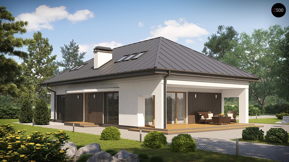Načrt klasične hiše s štirikapno streho ter izkoriščeno bivalno mansardo