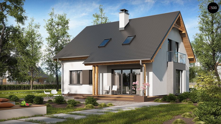 Verzija z enojno garažo z leve strani in dodatnim prostorom nad njo