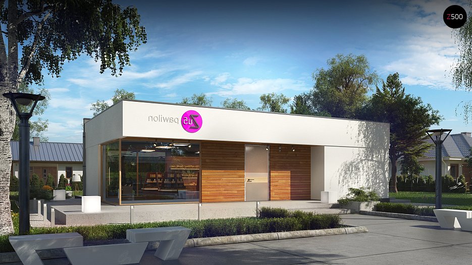Zu5 je projekt poslovnega lokala v montažni izvedbi. Projekt je zelo moderno zasnovan in vam omogoča poljubno notranjo razporeditev, tako, da ga boste lahko poljubno preuredili glede na lastne potrebe. Lokal se lahko uporablja tako za potrebe gostinske, prodajne , storitvene ali pisarniške dejavnosti. Njegova zasnova omogoča izrabo oziroma umestitev zunanjih terasnih površin praktično z vseh strani lokala.