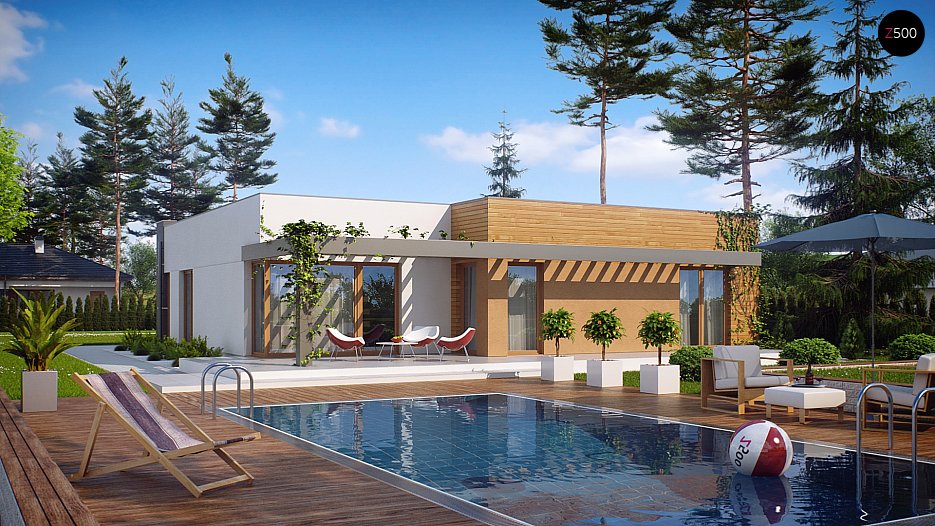 Projekt moderne pritlična hiše z garažo s prednje strani, vrhunsko oblikovane