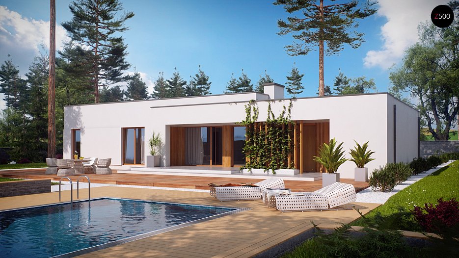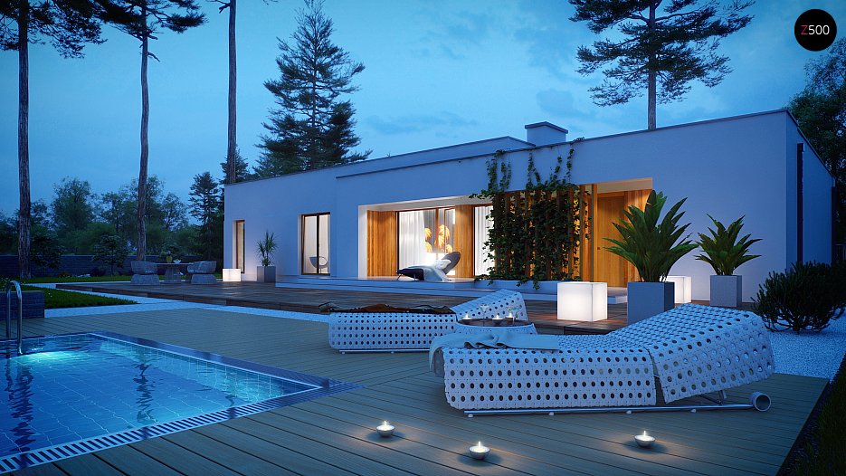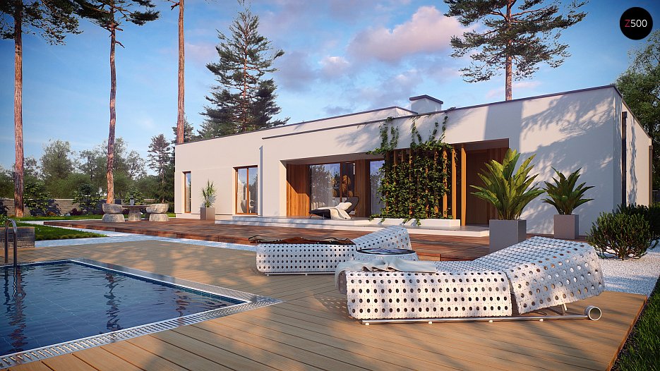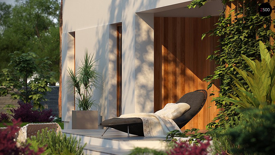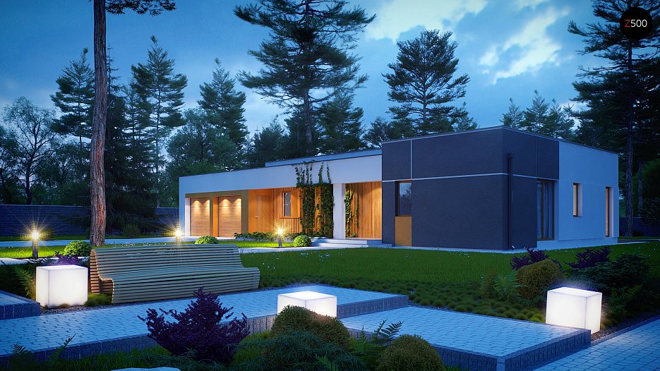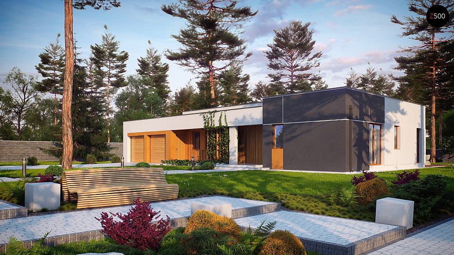 Verzija projekta hiše Zx102 z enojno garažo.