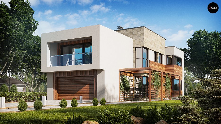 Zx114 Moderna vila z ravno streho, z garažo za dva avta, kabinetom v pritličju in večjo kurilnico
