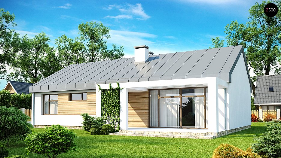 Zaletą domu jest połączenie kuchni, jadalni oraz salonu, co powiększy optycznie przestrzeń dzienną domu. Salon i jadalnia posiadają wyjścia na zadaszony taras poprzez suwane drzwi balkonowe. Zx17 to ciekawą propozycją dla osób ceniących wygodę i funkcjonalność na jednym poziomie. Ze względu na swoje małe wymiary nadaje się także na małą działkę.